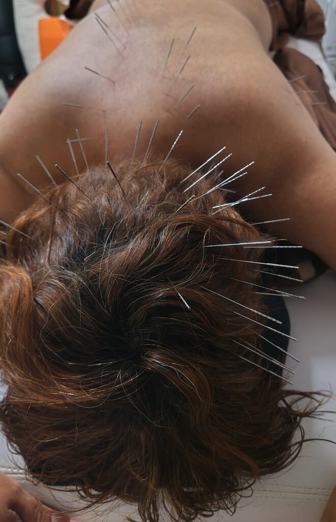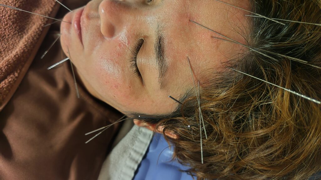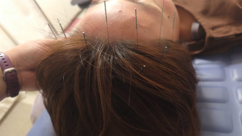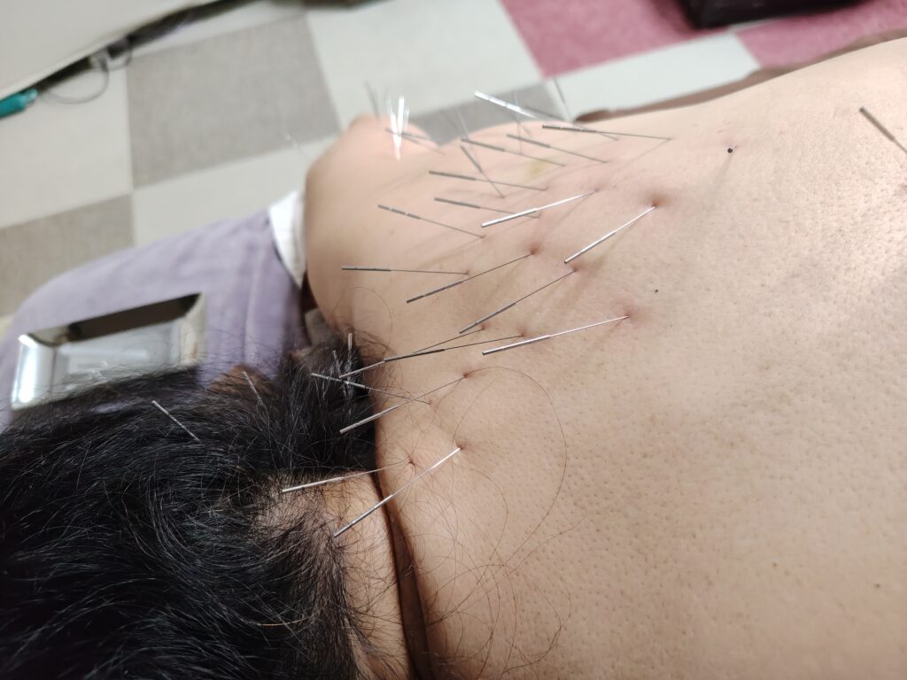 その後、オデコと喉、胸にも鍼