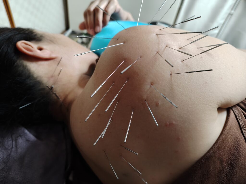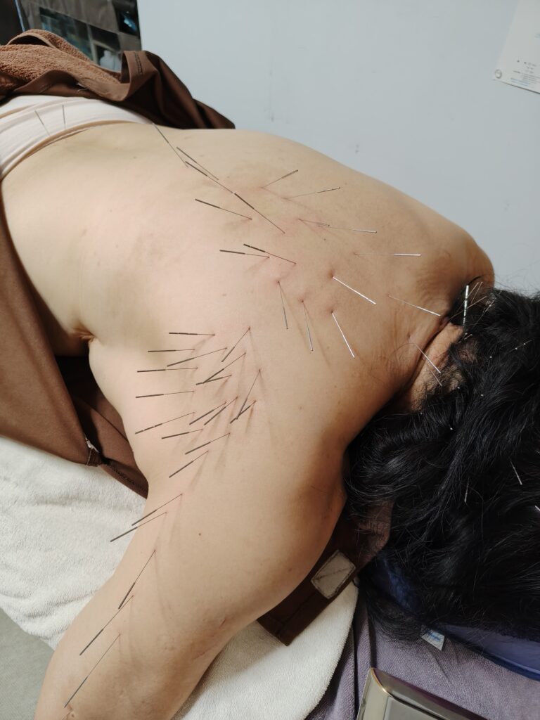 鍼は背中から首へ